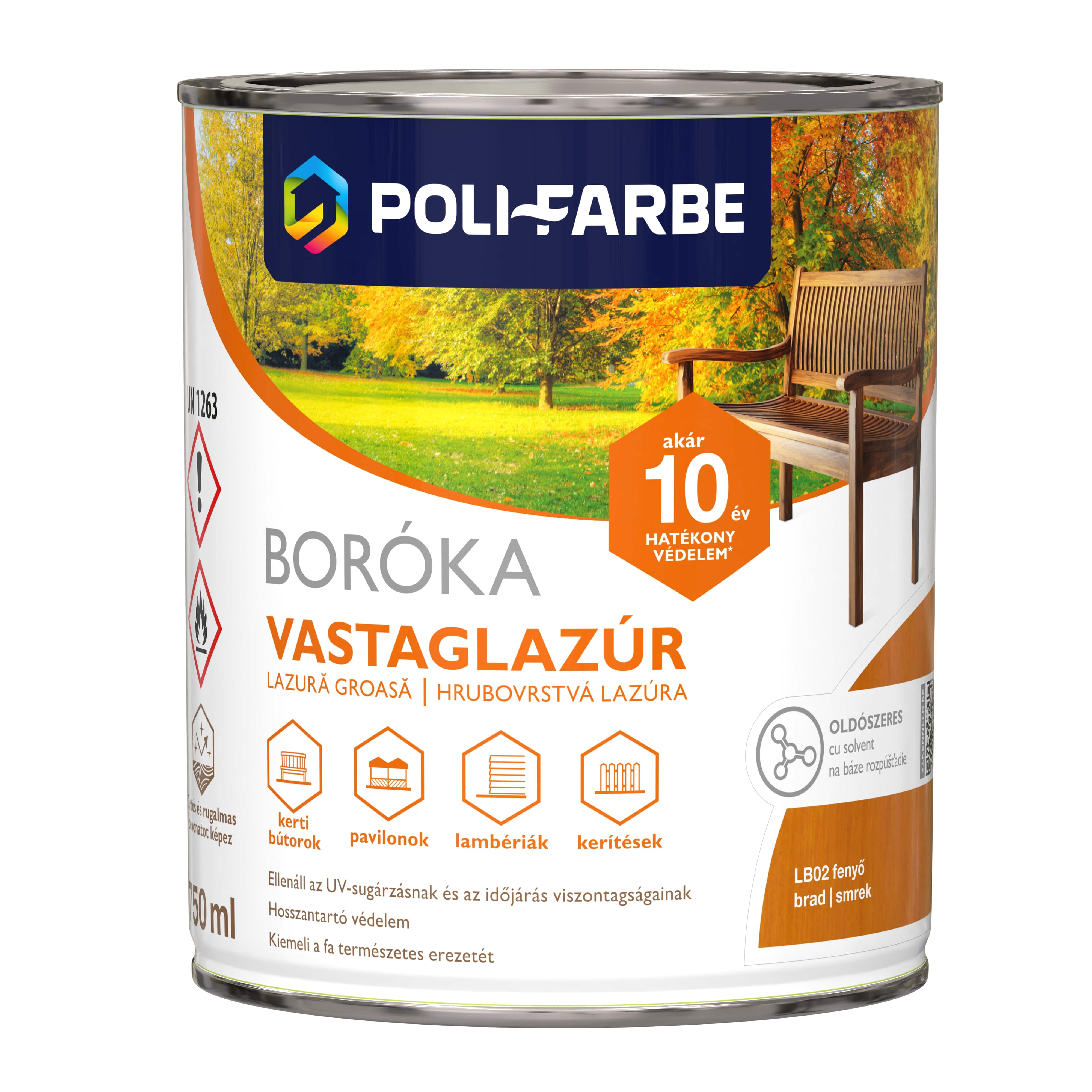 FELÜLET ELŐKÉSZÍTÉSE: A festendő felület legyen tiszta, száraz (max. 20% nedvességtartalom), sima, egyenletes, portalanított, zsírtól és gyantától mentes. A gyantás és zsíros részeket mossa le Poli-Farbe Nitrohígítóval és hagyja megszáradni. A termék alkalmazása előtt a teljes védelem elérése érdekében az új felületet kültéren való használat előtt a biokorróziótól védő BORÓKA BASE FAKONZERVÁLÓ ALAPOZÓVAL kell kezelni.